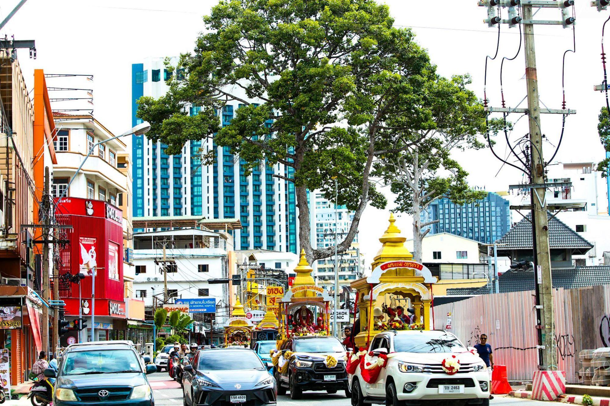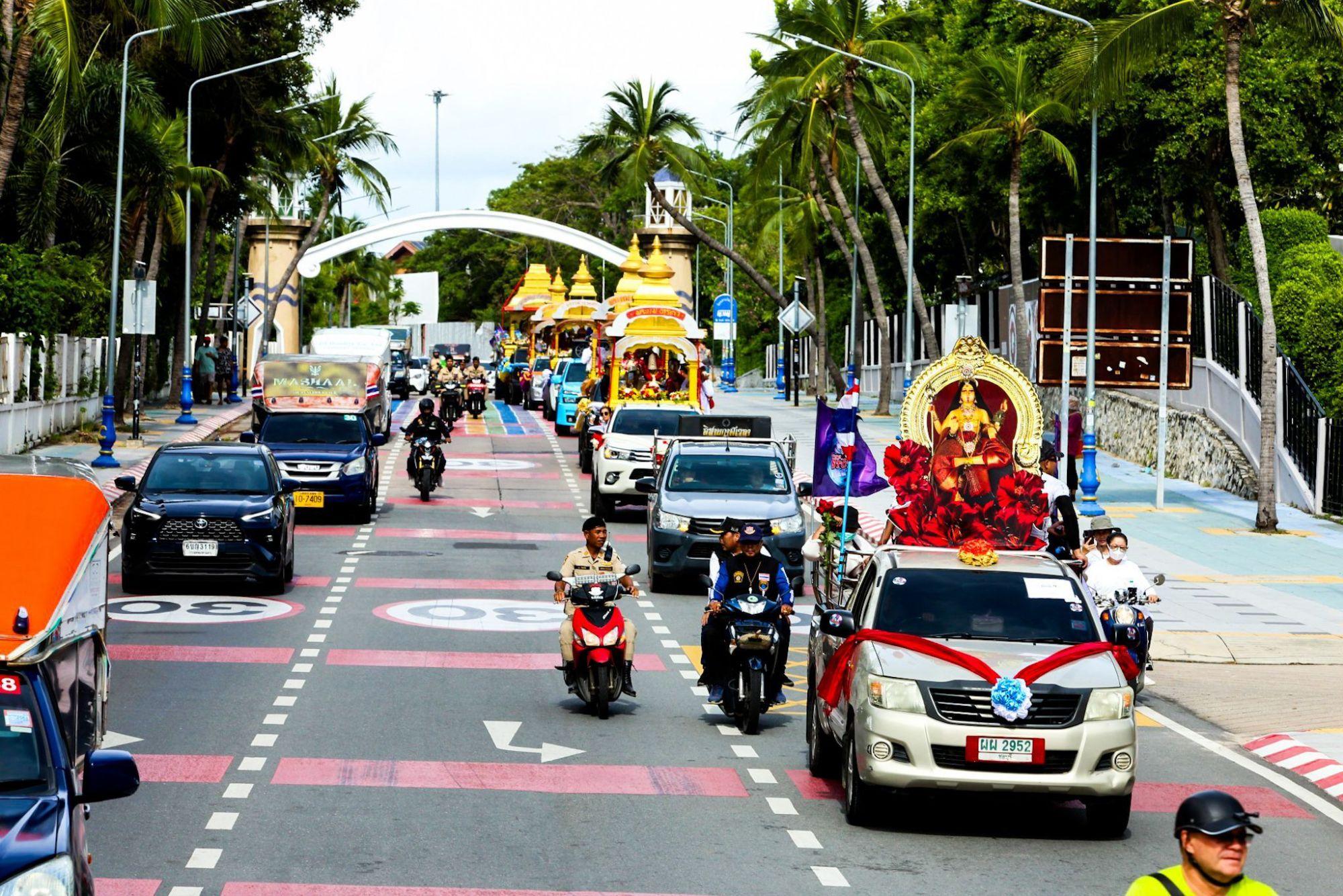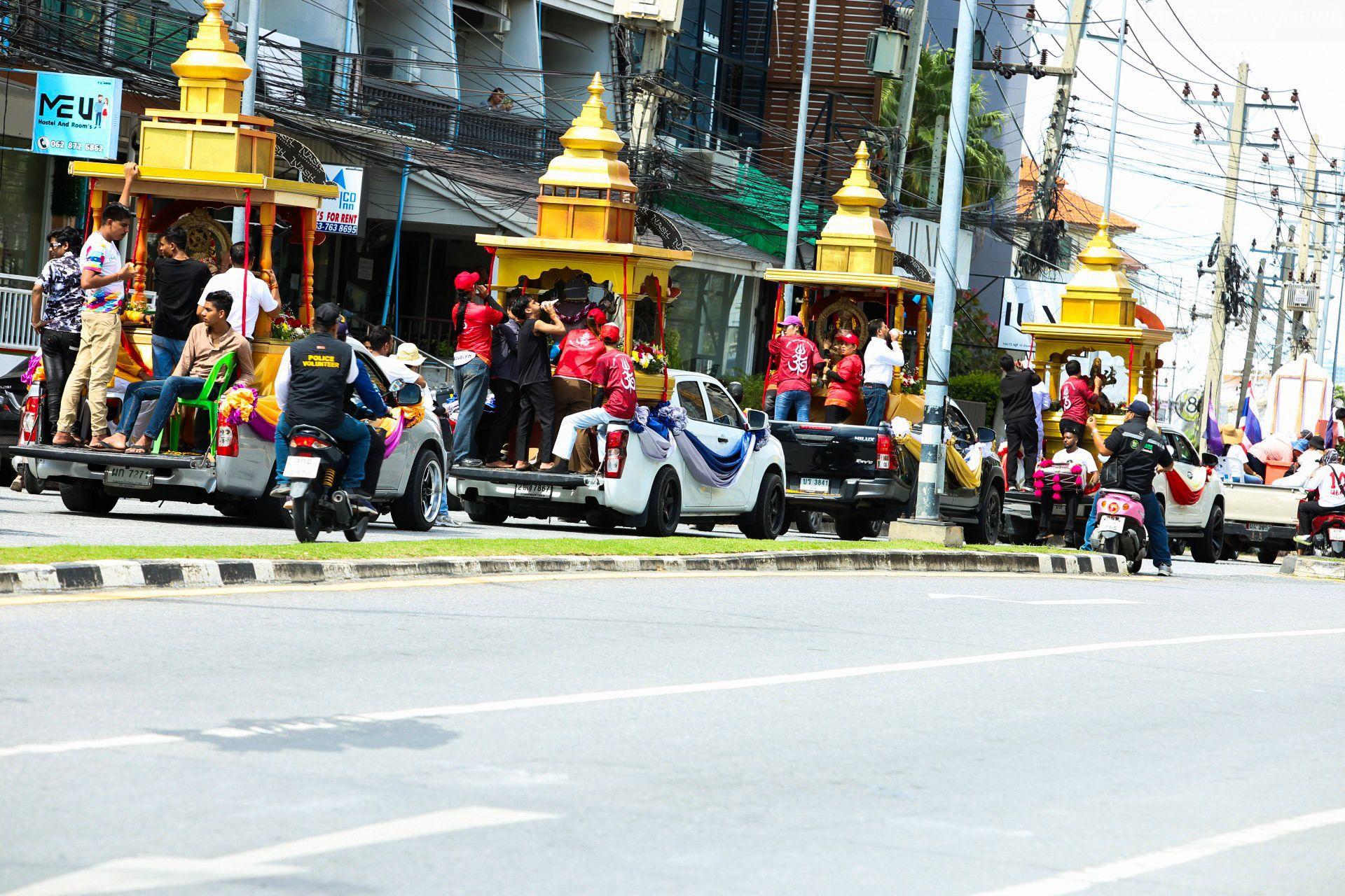 La processione è iniziata al tempio Maha Kali Avatar Janani in Soi Khao Phratamnak e si è snodata attraverso Pattaya Second Road, Beach Road, Dolphin Roundabout e Walking Street prima di tornare al tempio. Lungo il percorso, grandi folle di gente del posto e turisti hanno partecipato con entusiasmo, ricevendo benedizioni con le ceneri sacre, offrendo preghiere e chiedendo benedizioni divine alle divinità in un'atmosfera vivace e devozionale.