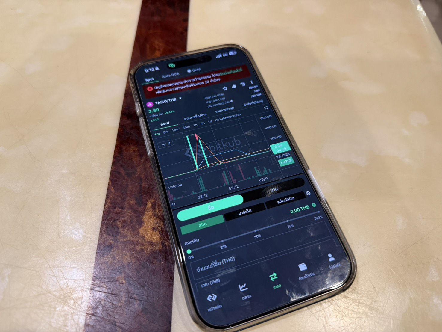 Il ricavato delle vendite, pari a circa 6.5 milioni di baht, è stato poi utilizzato per acquistare 10,538 unità della criptovaluta TAIKO a un prezzo insolitamente gonfiato di oltre 600 baht per moneta. Normalmente, TAIKO viene scambiata a circa 3 baht per moneta (circa 0.09-0.12 dollari USA, secondo i dati di mercato più recenti). In questo caso, il prezzo sarebbe aumentato di oltre 600 volte in soli quattro minuti, prima di crollare al suo livello normale, causando una perdita quasi totale per il titolare del conto.